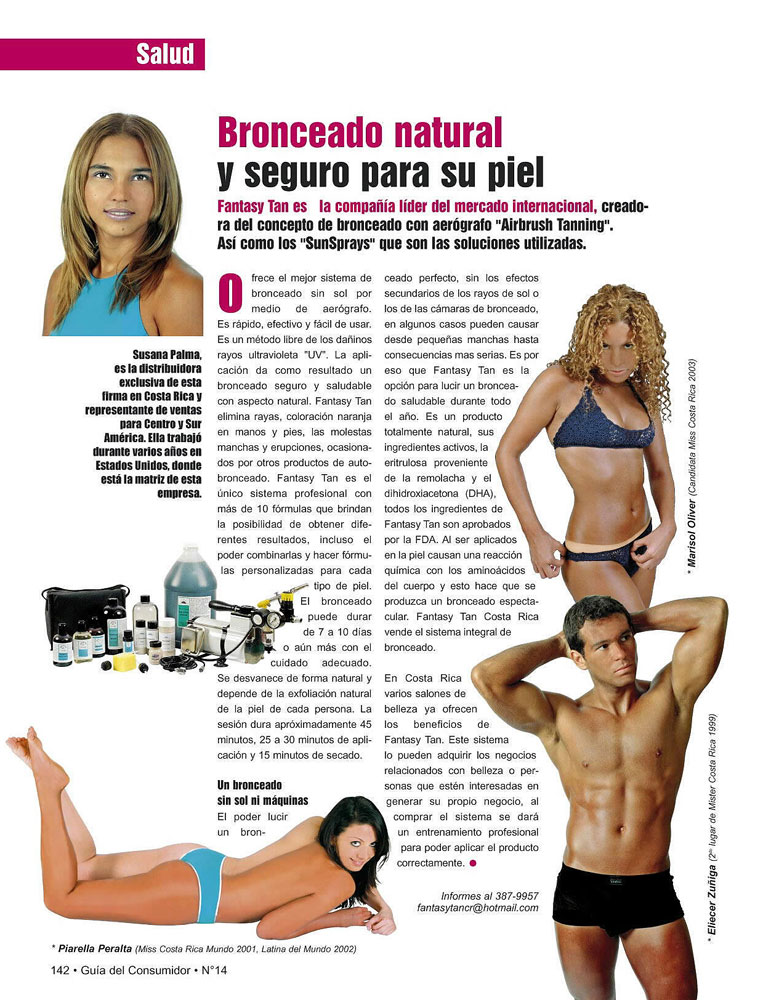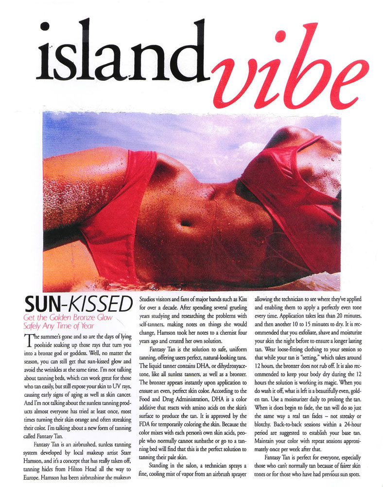 Fantasy Tan is leading the way in the world of professional spray tanning. Not only have our products been featured in dozens of leading magazines, we've also been featured on several TV programs. Please browse through the magazines below, or feel free to watch some videos. Enjoy!